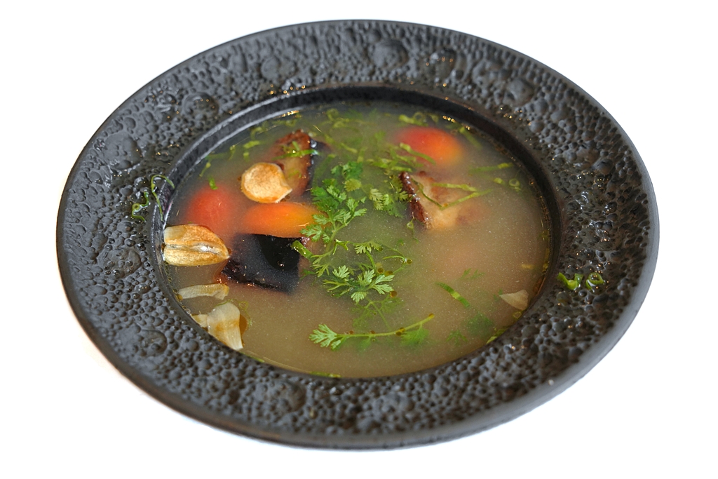 4. Old Style Hot & Sour Soup of Crisp Pork Leg, Jackfruit Seeds & Smoky Chicken Broth (650++ THB) [15/20] – ต้มยำเม็ดขนุนและขาหมูโบราณใส่หอมแดงเผาและมะเขือเทศ ตัวซุปต้มยำรสชาติซับซ้อนจากทั้งเครื่องสมุนไพรและซุปไก่รมควัน