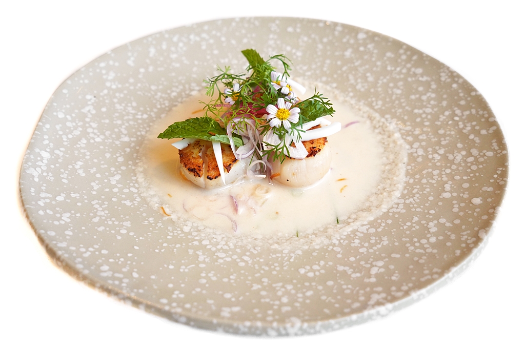 3. Seared Scallop Salad with Salak Fruit, Torch Ginger & Fiddle Head Fern (800++ THB) [16/20] – ยำหอยเชลล์ในซอสน้ำยำต้มข่าและสละ หอยเชลล์ตัวใหญ่เนื้อหวานฉ่ำสดมาก น้ำต้มข่าก็อร่อยสดชื่นเข้ากัน
