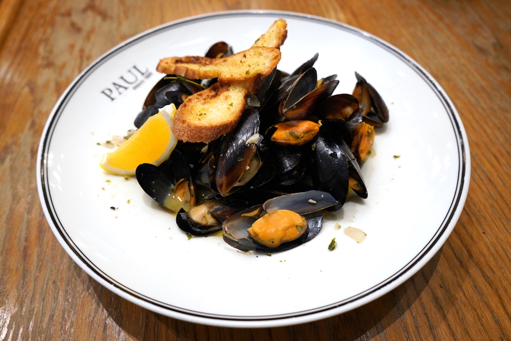 2. Mussels White Wine (410+ THB) [15/20] – หอยแมลงภู่ต้มกับไวน์ขาวและสมุนไพรเสิร์ฟคู่กับขนมปังกระเทียม