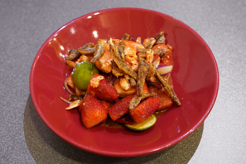 6. Strawberry Som Tum with Shrimp Paste Sauce (400+ THB) [15/20] – ตำกะปิสตรอว์เบอร์รีที่ใช้สตรอว์เบอร์รีเกรดดีเยี่ยมเนื้อหวานฉ่ำเข้ากับความอูมามิเค็มๆของกะปิ
