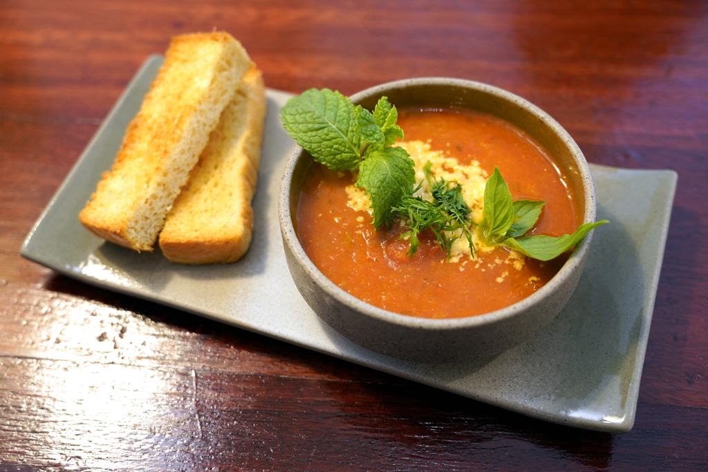 6. Tomato Soup (180 THB) [15/20] – ซุปมะเขือเทศสดปั่นผสมกับออริกาโนและใบไทม์แบบไม่ผสมครีมเสิร์ฟคู่กับขนมปังปิ้ง
