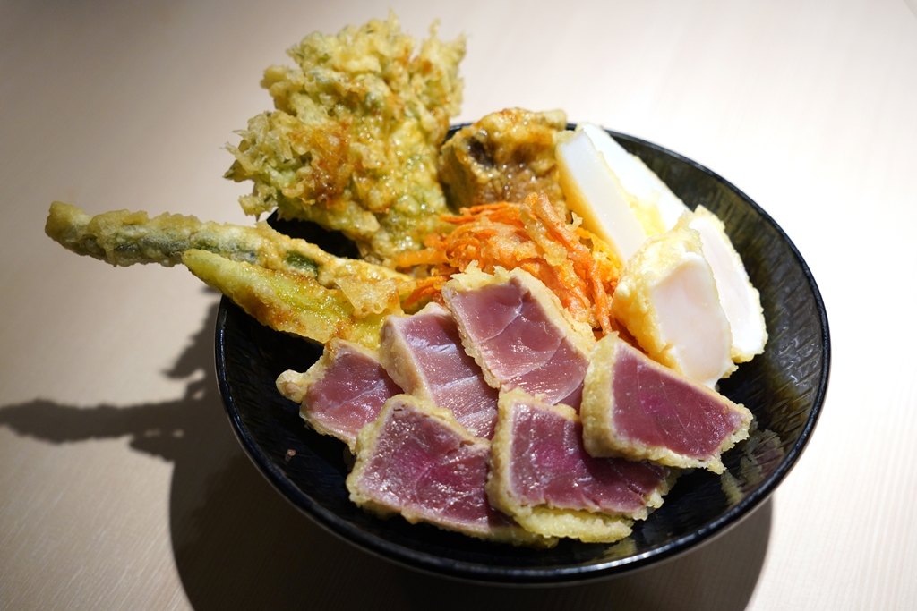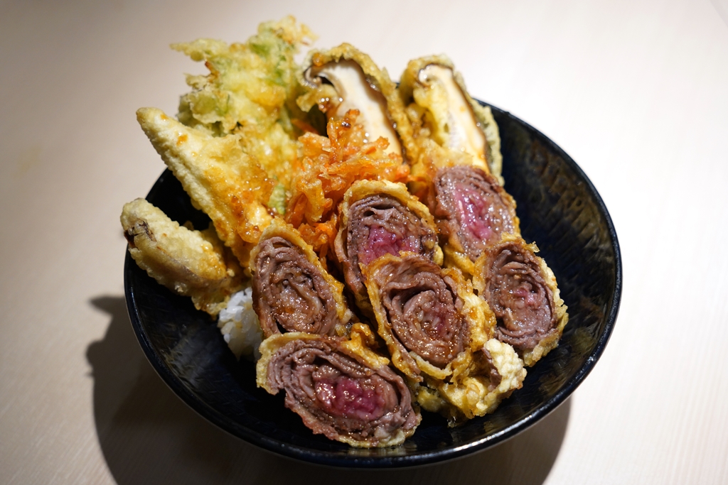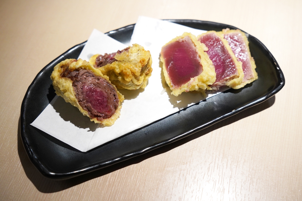 3. Black Wagyu Beef (1,100+ JPY) & Bluefin Tuna Red Meat (900+ JPY) [16/20] – เมนูเทมปุระแบบสั่งมาเติมที่แน่นอนว่าต้องเลือกวากิวและปลาทูน่าที่โดดเด่นที่สุดอยู่แล้ว