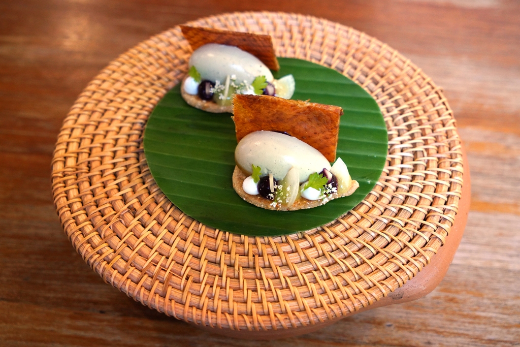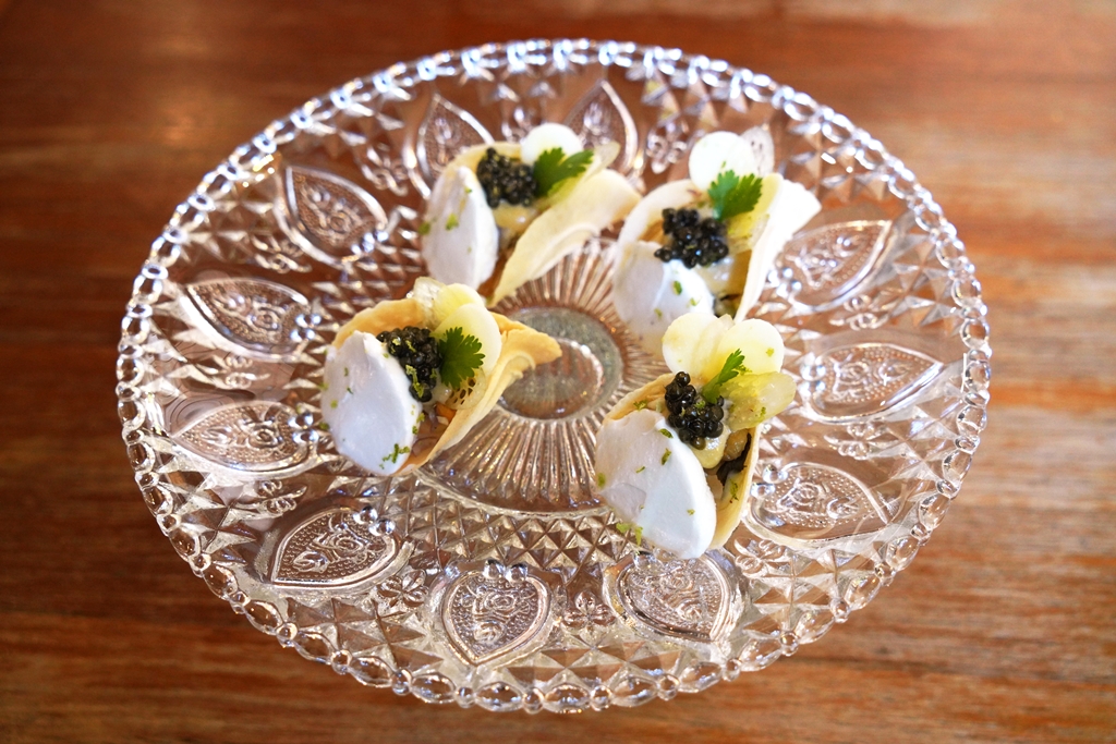 1. Crispy Pancake with Grilled Ricefield Crab Fat Sauce and Huahin Caviar (690++ THB) [15/20] – ขนมเบื้องกรอบไส้หลนอ่องปูนาแบบครีมหอมๆโรยหน้าด้วยไข่ปลาคาเวียร์จากหัวหิน