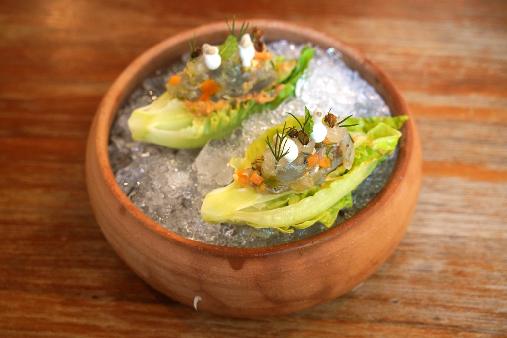 3. Cured Prawns with Big-Butt Ants (310++ THB) [15/20] – กุ้งแช่น้ำปลาเคียวร์ในน้ำปลาแท้ๆเสิร์ฟคู่กับแม่เป้งรสเปรี้ยวและซอสมันกุ้ง