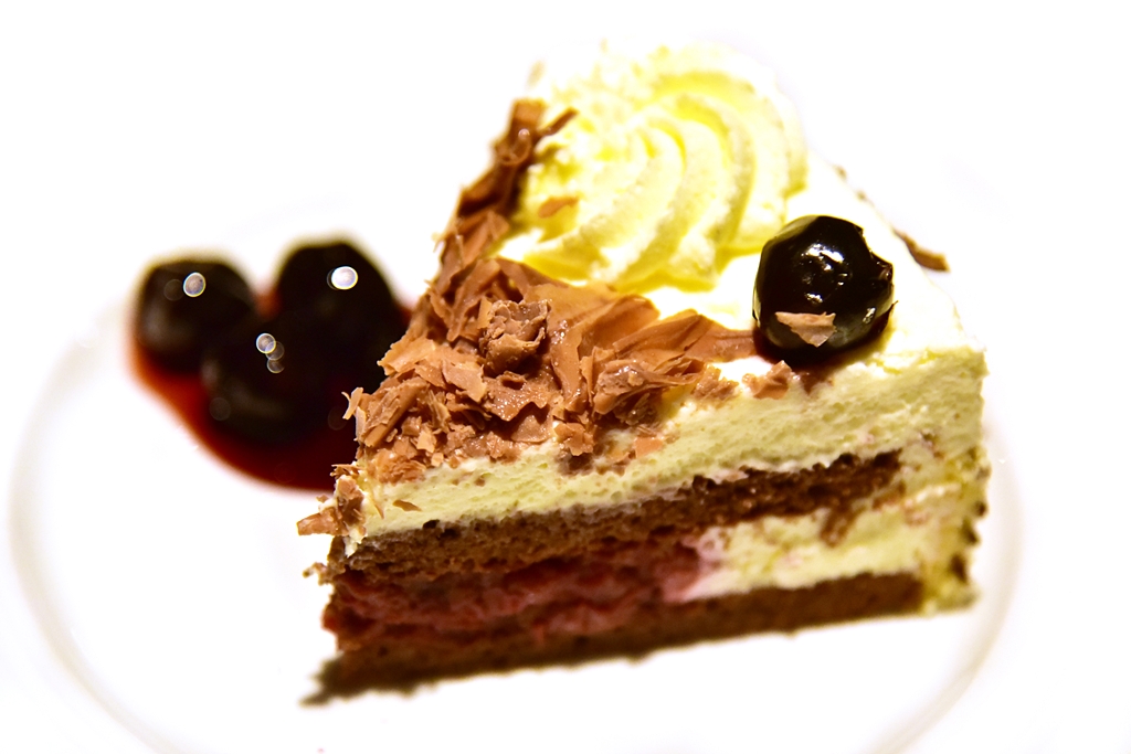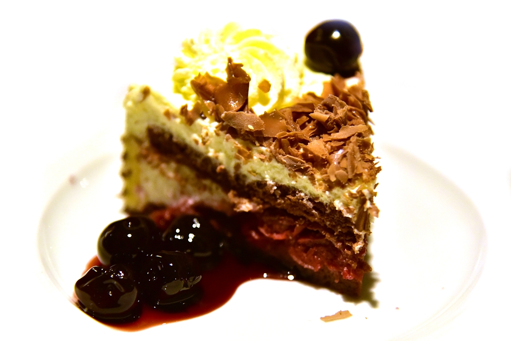 7. Black Forest Cake (4.75 EURO) – เค้กแบล็กฟอร์เรสต์ที่ประกอบด้วยเนื้อเค้กช็อกโกแลต ครีมและซอสราสเบอร์รี