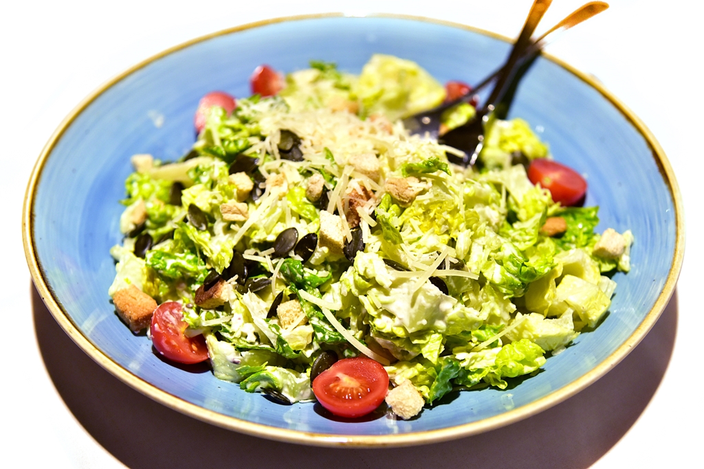 3. Caesar Salad with Black Olive Ciabatta (11.00 EURO) – สลัดซีซาร์ชามยักษ์ที่เสิร์ฟมาคู่กับขนมปังปิ้งหน้ามะกอกดำ