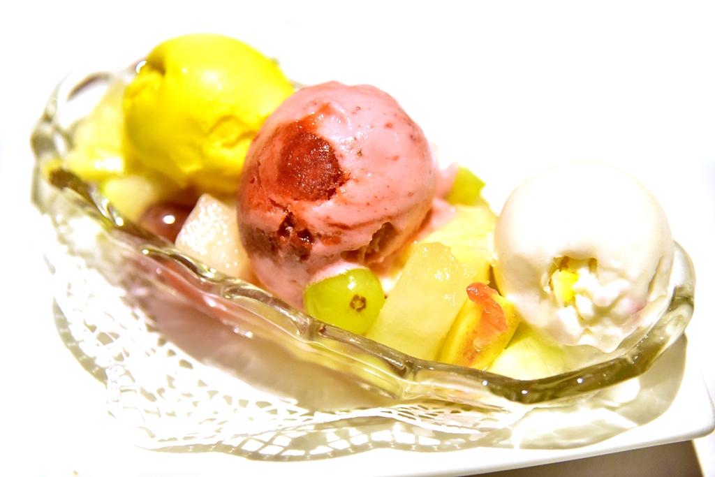 6. Coppa Tutti Frutti (8.50 EURO) – ไอศกรีมผลไม้สามรสเสิร์ฟคู่กับสลัดผลไม้