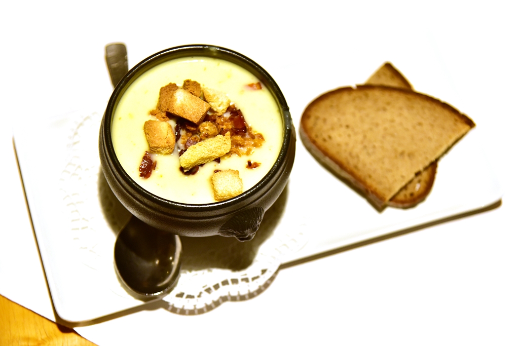 2. Ratskeller Potato Soup (6.50 EURO) – ซุปมันฝรั่งโรยหน้าด้วยขนมปังกรอบและเบค่อนรสเข้มข้นหอมมัน