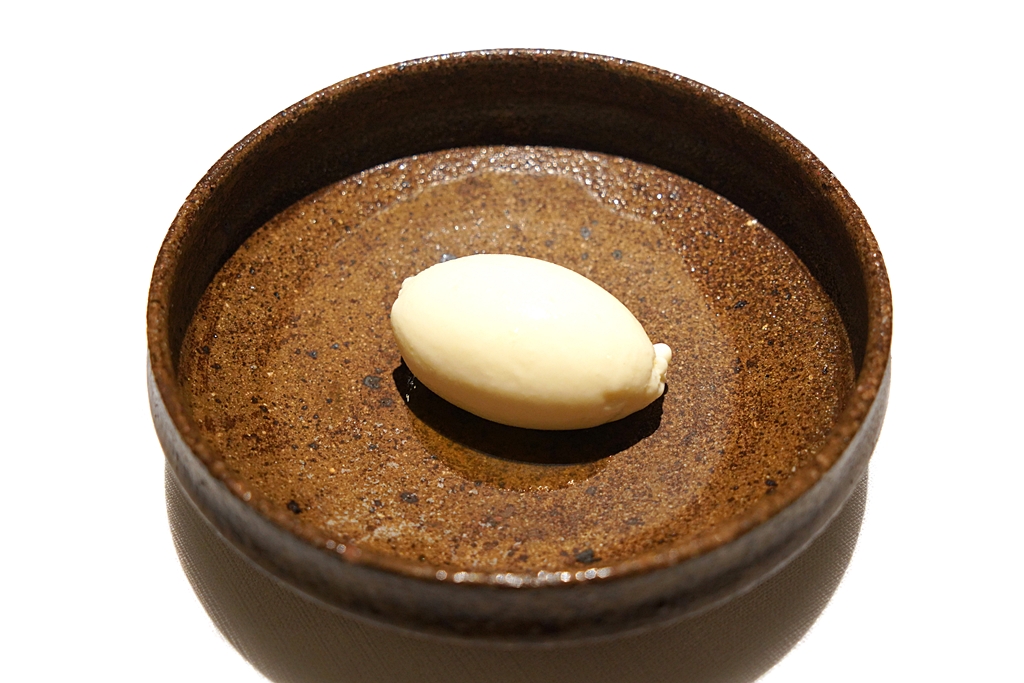 1st course : Clams, Soymilk [17/20] – ซุปหอยตลับรสชาติกลมกล่อมอูมามิเสิร์ฟแบบร้อนๆพร้อมด้วยเนื้อหอยตลับและหนวดปลาหมึกเนื้อนุ่มหนึบ ท็อปด้วยโฟมนมถั่วเหลือง เมนูนี้ทานแล้วการันตีว่าต้องร้องขออีกถ้วย