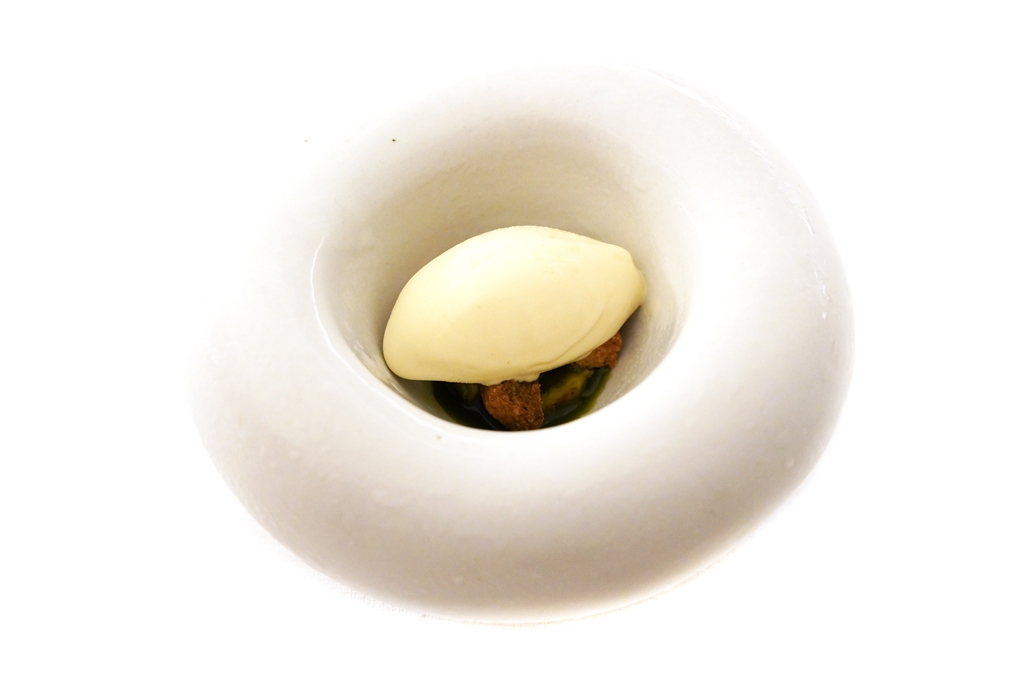 10th course : Smoked Camembert, Fig [16/20] – ไอศกรีมชีสกามองแบต์รมควันเสิร์ฟคู่กับเนื้อลูกฟิก น้ำมันลูกฟิกและครัมเบิ้ลกรอบ