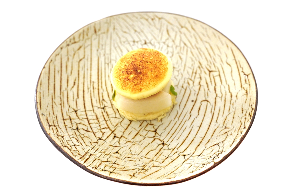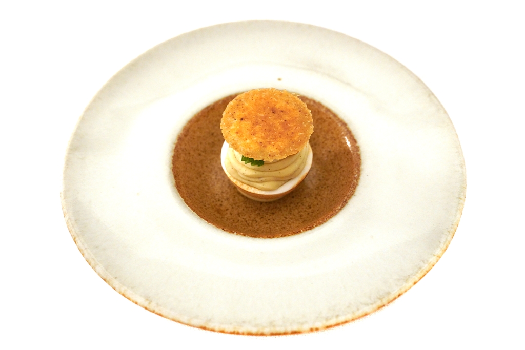 6th course : Crab, Cabbage [17/20] – คร็อกเก็ตชิราโกะทอดกรอบเสิร์ฟคู่กับเนื้อปูซูไวและกะหล่ำย่างเตาถ่านราดซอสบัตเตอร์