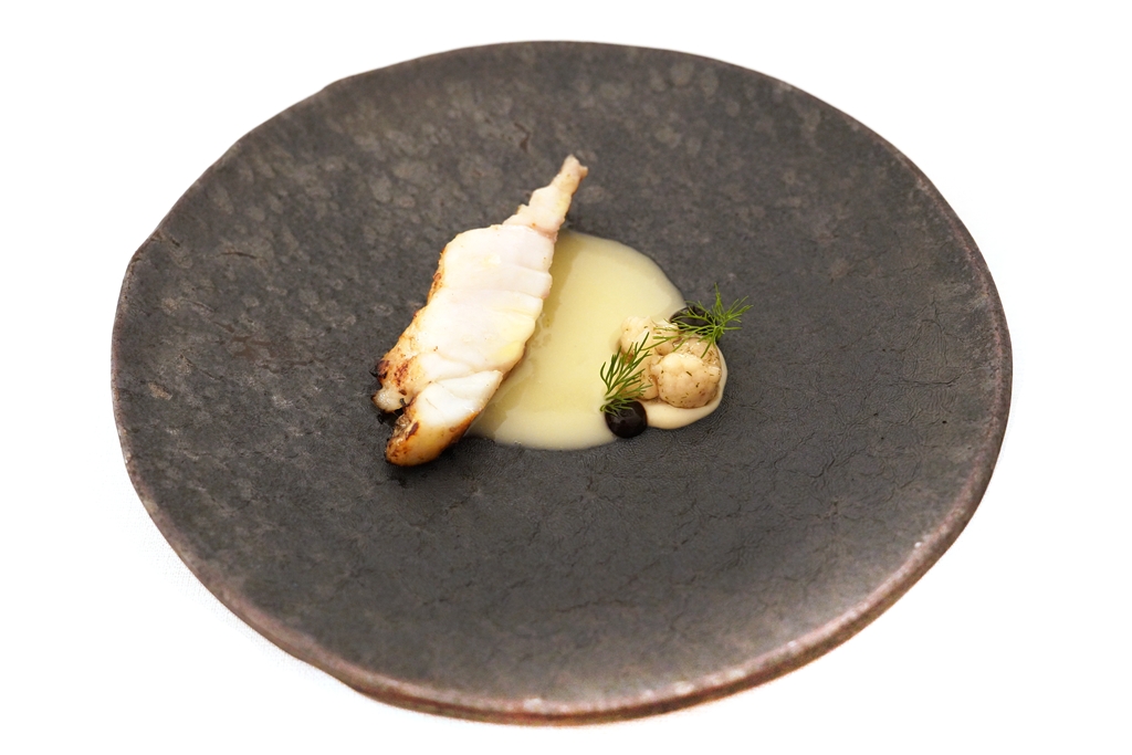 5th course : Rock Cod [18/20] – ปลาเก๋าเพลิงหมักชิโอะโคจิย่างเตาถ่านเนื้อขาวเด้งเสิร์ฟกับซอสบ๊วยและดอกกะหล่ำพิวรี ถือเป็นจานปลาที่อร่อยมากครับ