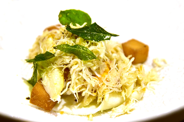 4th course: AH HUA FELONG FLOWER CRAB ‘chilli crab ice cream’ – ไอศกรีมซอสชีลลี่แคร้บรสเข้มข้นเสิร์ฟคู่กับเนื้อปูที่อร่อยได้อย่างไม่น่าเชื่อ