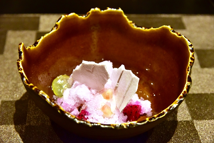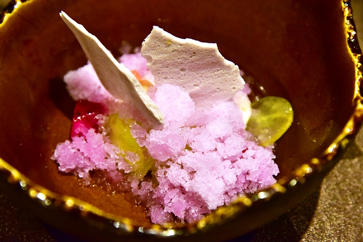 7th course: CLAM LEAF SNOW ‘ice kachang’ – น้ำแข็งไสน้ำแดงรสหวานสำหรับล้างปาก
