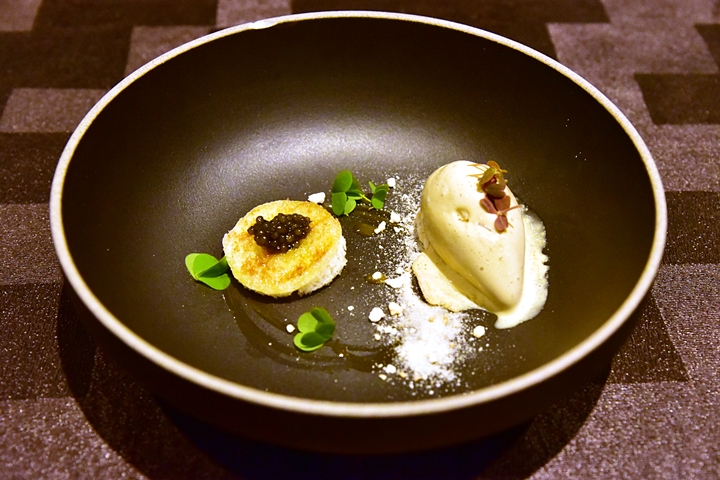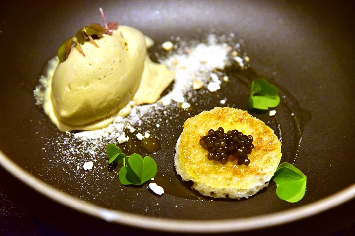 8th course: CRISTAL DE CHINE CAVIAR & KAYA ‘kaya butter toast’ – ขนมปังปิ้งหน้าไข่ปลาคาเวีัยร์เสิร์ฟคู่กับไอศกรีมสังขยารสเข้ม