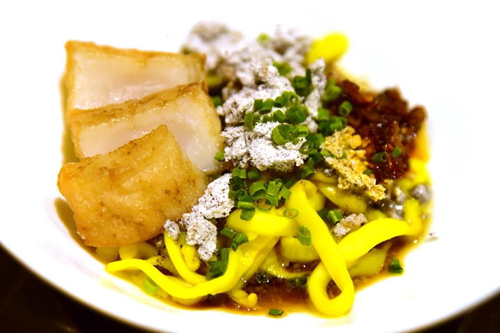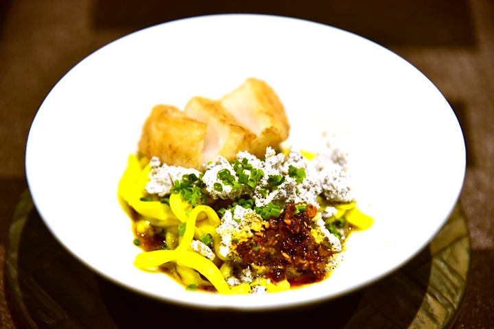 2nd course: HOKKAIDO SCALLOP ‘bak chor mee’ – บะหมี่เส้นปลาหมึกเนื้อหนึบเสิร์ฟคู่กับหอยเชลล์ฮอกไกโดย่างปรุงรสเผ็ดเข้มข้น