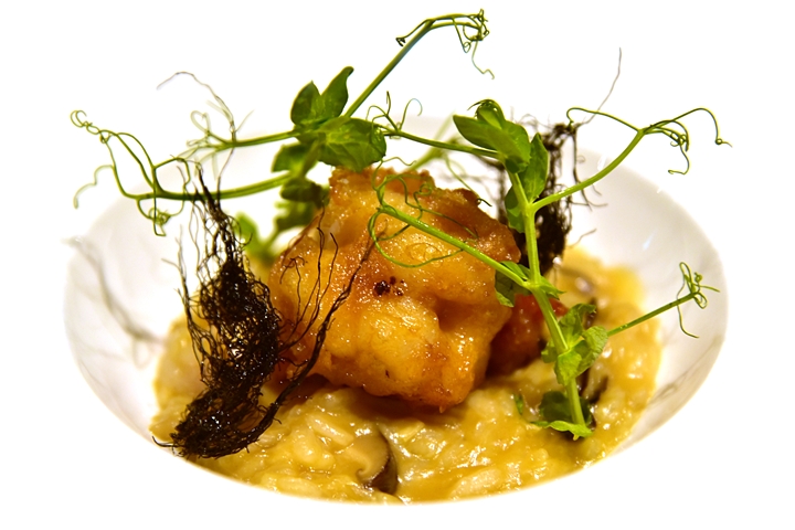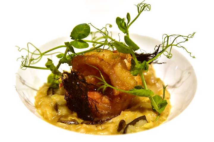 3rd course: TIGER PRAWN, UMAMI ‘har cheong porridge’ – ริซอตโตซีฟู้ดรสเข้มข้นหอมอร่อยเสิร์ฟคู่กับกุ้งลายเสือตัวใหญ่เนื้อหวานกรอบเข้ากันได้ดีมากจริงๆ