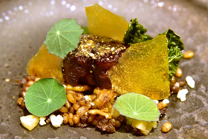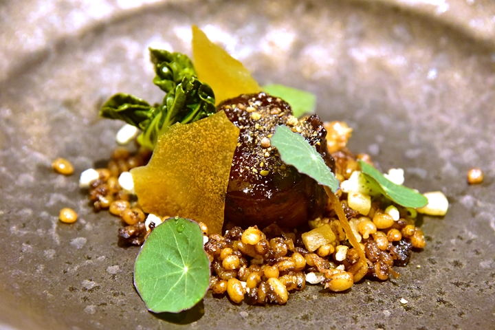 5th course: TWO CUT INDONESIAN PORK ‘char siew rice’ – เนื้อหมูบาร์บีคิวฉ่ำๆเสิร์ฟคู่กับข้าวธัญพืชกรอบนานาชนิด