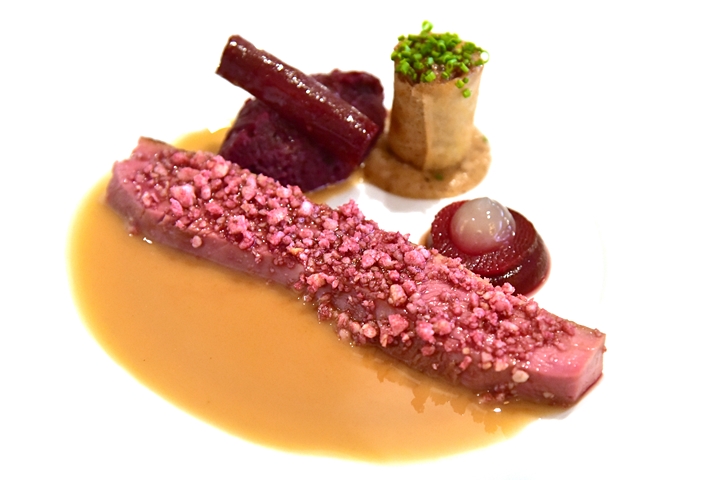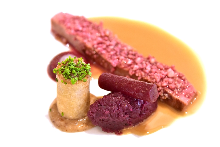 4th course: ROASTED BREAST & PASTILLA OF GOOSNARGH DUCK, red cabbagem beetroot, macadamia and redcurrant – เนื้ออกเป็ดที่นุ่มโคตรๆเคลือบถั่วแมคคาดาเมียเสิร์ฟคู่กับบีทรูทและกะหล่ำปลีแดง