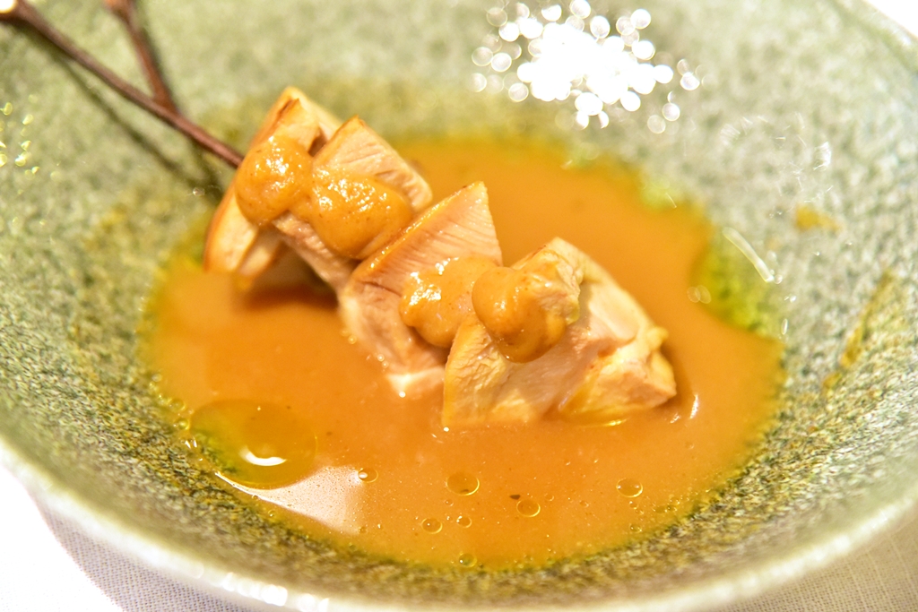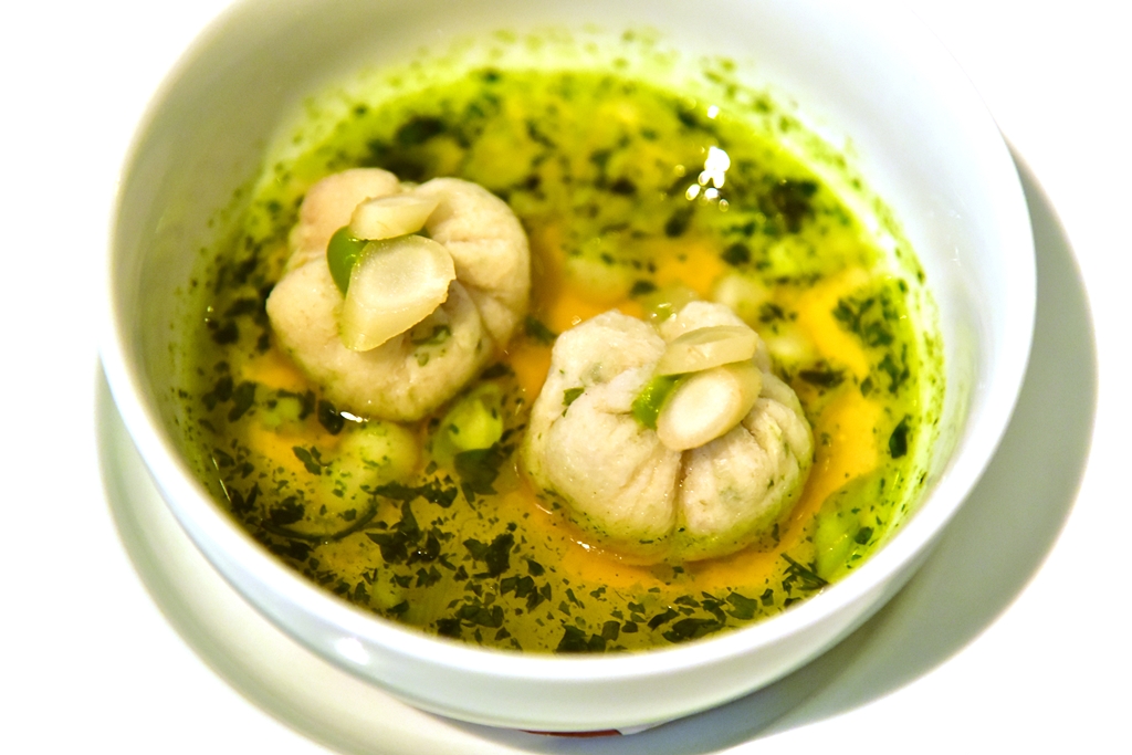 2nd course: Dim Sum, Chicken Stock, Scallop & Bamboo Mushroom – ติ่มซำหอยเชลล์ห่อด้วยเยื่อไผ่เสิร์ฟในซุปไก่ที่ทำรสชาติออกมาได้ยอดเยี่ยมมากๆ