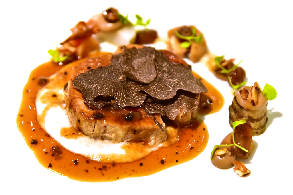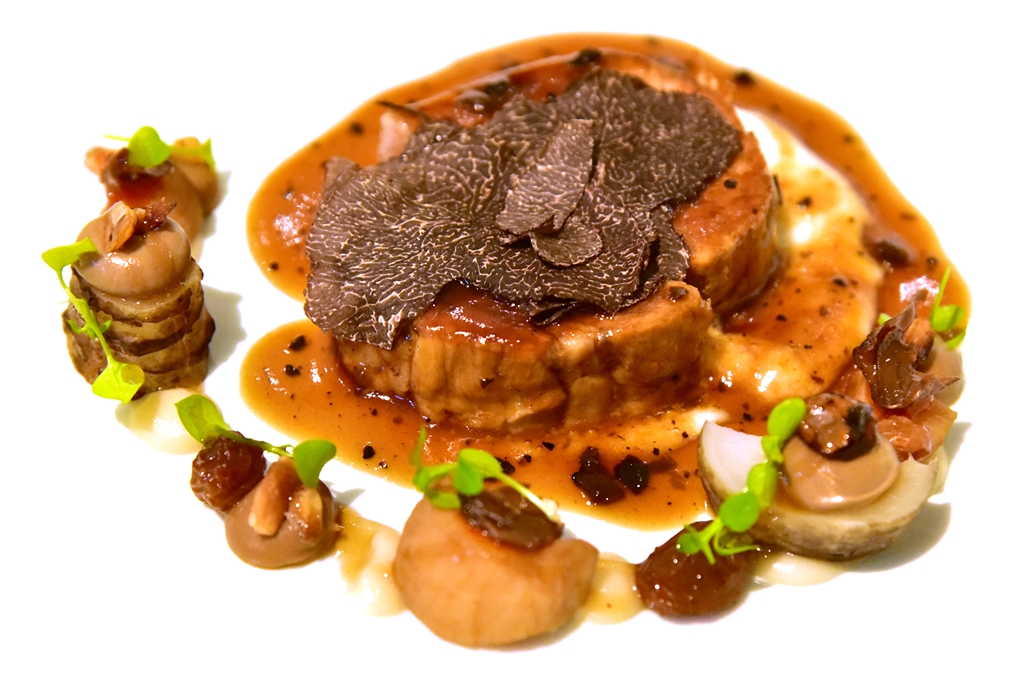 6th course: Veal, Water Chestnut & Black Truffle – เนื้อลูกวัวย่างกลิ่นหอมอร่อยเสิร์ฟคู่กับแห้วและเห็ดทรัฟเฟิลดำหอมกรุ่น