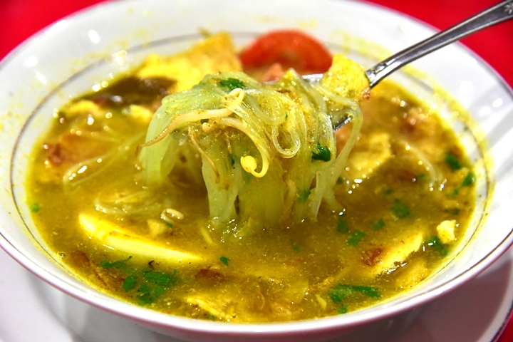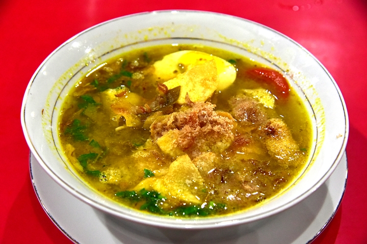 6. Soto Ayam Utama (Rp. 17.500) – ซุปไก่สีเหลืองสไตล์อินโดรสกลมกล่อมเสิร์ฟคู่กับข้าวสวย