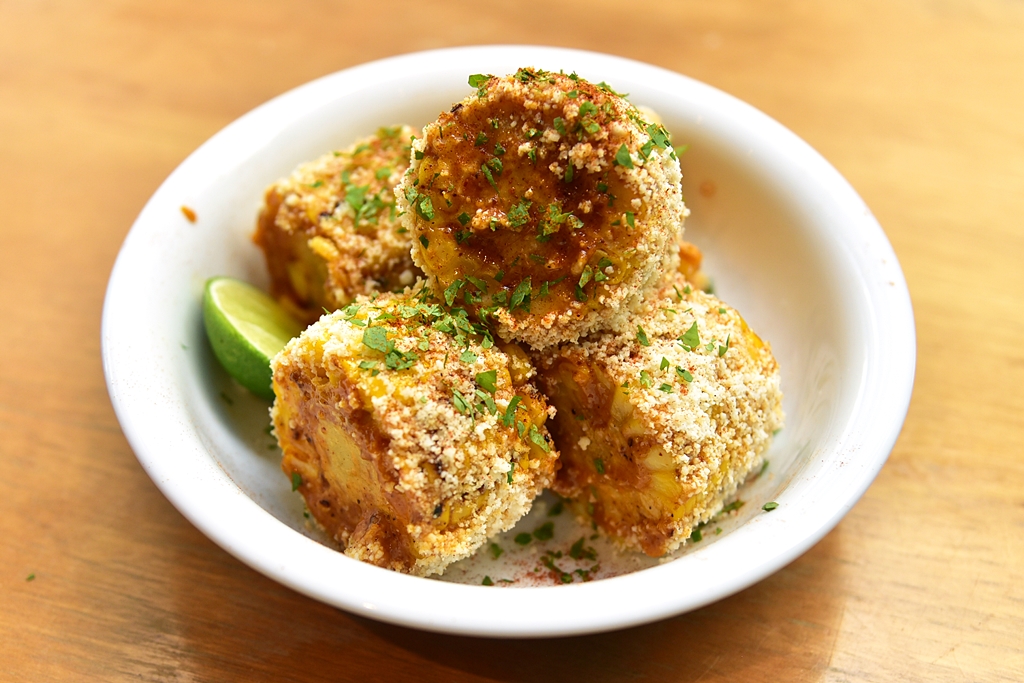 2. Grilled Corn (180++ THB) – ข้าวโพดย่างโปะด้วยซอสมายองเนส ชีสและพริกป่นเสิร์ฟคู่กับมะนาว