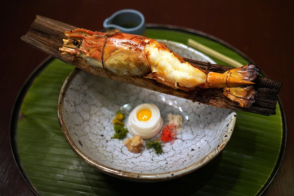 2nd course : FERMENTED | Small Boat Mackerel | Surat Thani River Prawn | Homemade Rice Noodle [18/20] – “ไตปลาทรงเครื่อง” ซึ่งถือเป็นเมนูเด่นที่สุดของเมนูอาหารคาวที่เชฟเลือกใช้กุ้งแม่น้ำตัวใหญ่ย่างอย่างดีเสิร์ฟคู่กับเส้นหมี่ขาว ไข่นกกระทาและซอสแกงไตปลาแบบไม่มีกลิ่นที่รสชาติอูมามิมากๆ ทานทุกอย่างเข้าด้วยกันคืออร่อยแบบสุดๆ