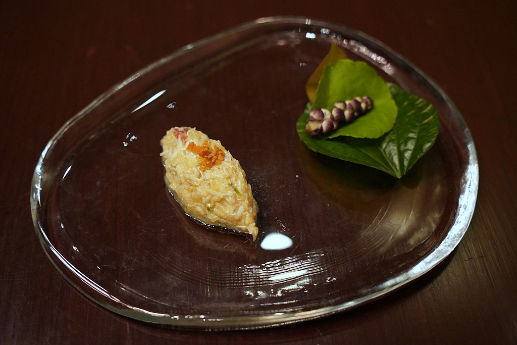 4th course : MIANG | Brittany Tourteau Crab | Blue Swimmer Crab | Samut Sakhorn Mud Crab | Rice Paddy Crab [15/20] – “ปูซ่อนกลิ่น” เมี่ยงเนื้อปู 4 ชนิดผสมเครื่องเทศ มันปูนาและน้ำส้มซ่า เสิร์ฟคู่กับผักพื้นบ้าน 4 ชนิดสำหรับทานแบบเมี่ยงเป็นคำๆ