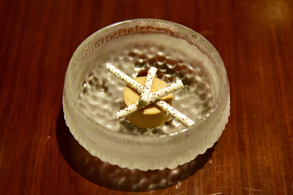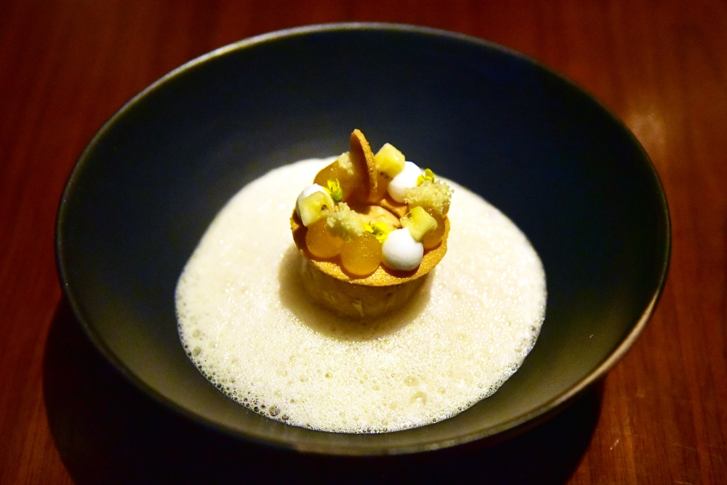 9th course: DESSERT | Gluay Nam Wa | Coconut-Sesame | Mango – “กล้วยบวชชี” เวอร์ชั่นที่แทบจะจำหน้าตาไม่ได้ แต่พอทานเข้าไปนี่ความเป็นกล้วยบวชชีกลับมาแบบเต็มๆมากๆ ยอดเยี่ยม !!