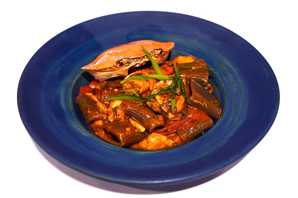 4. Paccheri neri al Granchio (790++ THB) [15/20] – พาสต้าหลอดเส้นหนาใหญ่เสิร์ฟในซอสซีฟู้ดรสชาติหวานหอมมันพร้อมด้วยเนื้อปูหวานฉ่ำชิ้นโตทั้งตัวและมะเขือเทศ เมนูนี้เป็นซิกเนเจอร์ของ Salvia ที่ก็อร่อยจุใจจริง