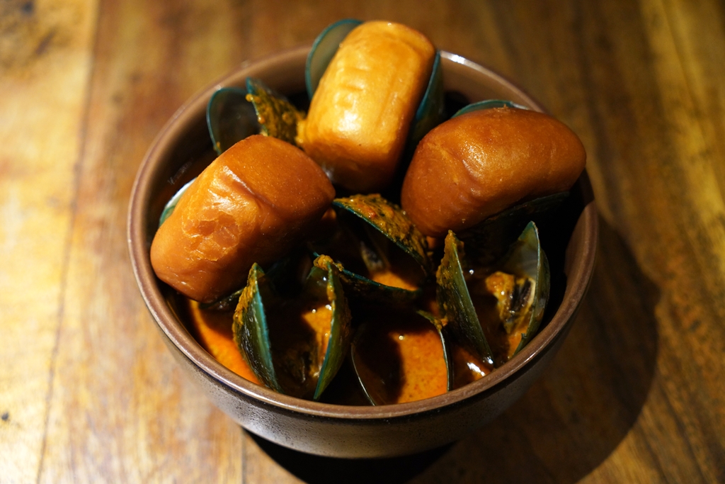 1. Curry Mussels (18++ SGD) [16/20] – แกงพริกจีนผสมอินเดียกับหอยแมลงภู่ตัวโตเนื้อนุ่มฉ่ำเสิร์ฟคู่กับหมั่นโถวทอด