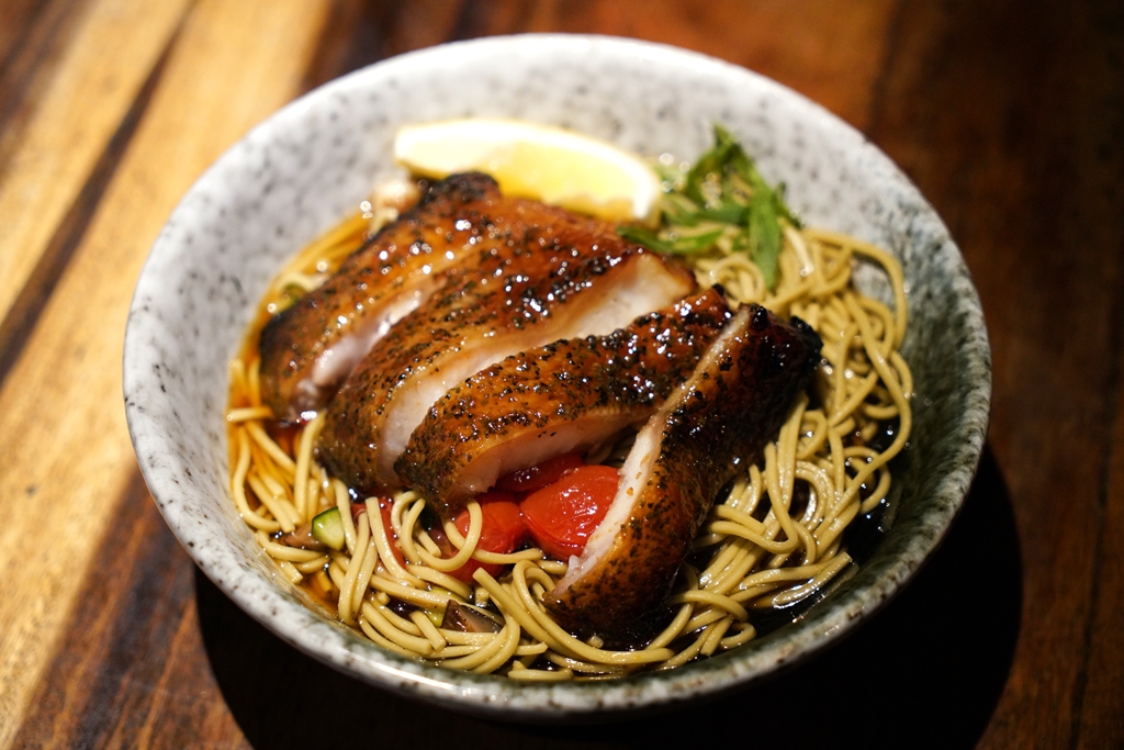 6. Charsiew Cold Soba (34++ SGD) [17/20] – โซบะเย็นในน้ำซุปเห็ดชิตาเกะและมะเขือเทศเสิร์ฟคู่กับเนื้อปลาเก๋าส่วนท้องบาร์บีคิวในแบบหมูแดง