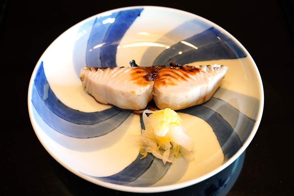 7th course : Grilled Spanish Mackerel, Butterbur Sprout Soy Sauce, Udo and Hassaku Orange [16/20] – เนื้อปลาซาวาระย่างเนื้อขาวเนียนเสิร์ฟกับซอสซีอิ๊วผักฟูคิโนะโตและผักดองโรยหน้าด้วยเนื้อส้ม เนื้อปลาย่างดีงาม