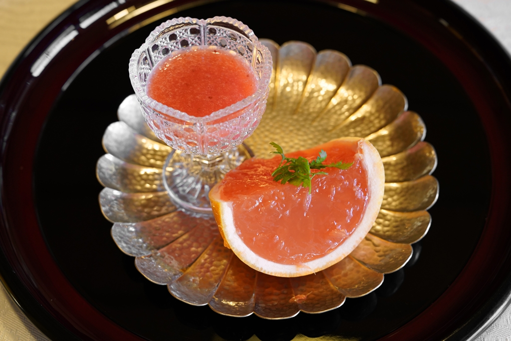 10th course : Pureed Strawberry, Orange-Citrus Jelly and Brown Sugar Yokan [16/20] – สตรอว์เบอร์รีพิวรีเสิร์ฟคู่กับเจลลี่ส้มในผลส้มรสเปรี้ยวสดชื่น ตบท้ายด้วยวุ้นน้ำตาลทรายแดง ปิดท้ายมื้อก็จะมีมัตฉะมาเสิร์ฟให้ด้วยครับ