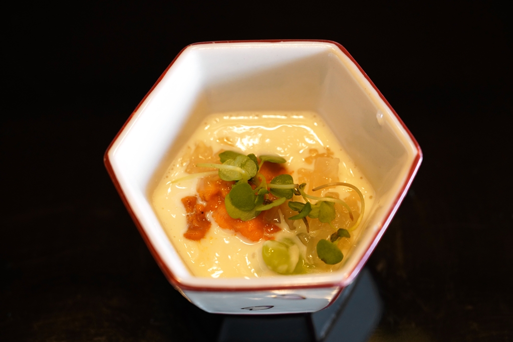 1st course : Pureed Tofu Skin with Clam Broth Jelly [16/20] – ฟองเต้าหู้สดพิวรีเนื้อเนียนละมุนเสิร์ฟกับเจลลี่ซุปหอย ถั่วปากอ้าญี่ปุ่นและไข่หอยเม่น