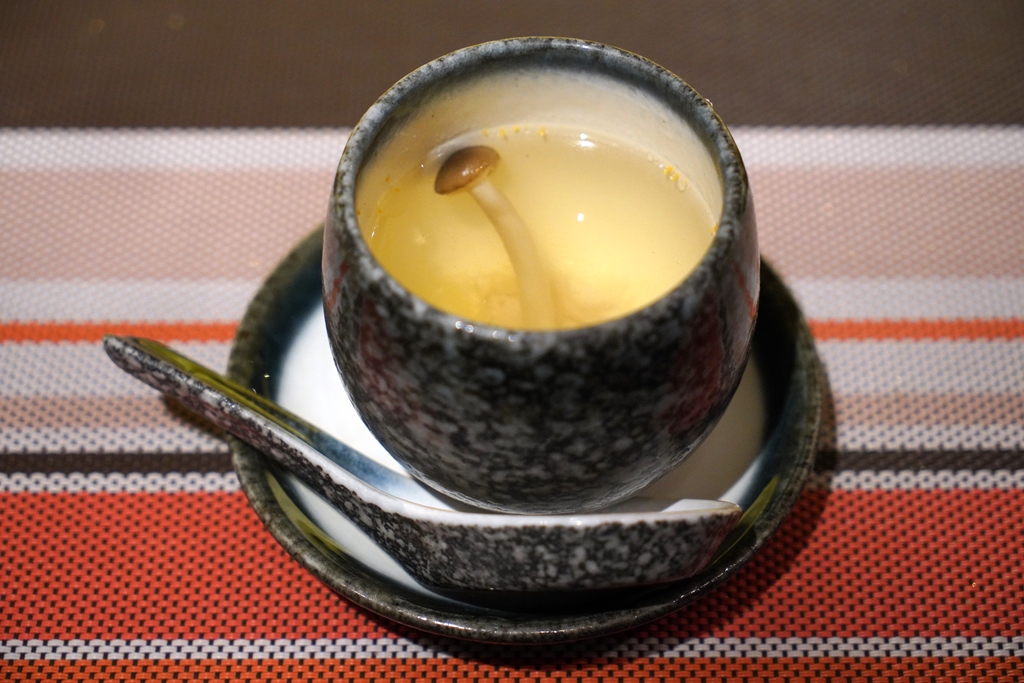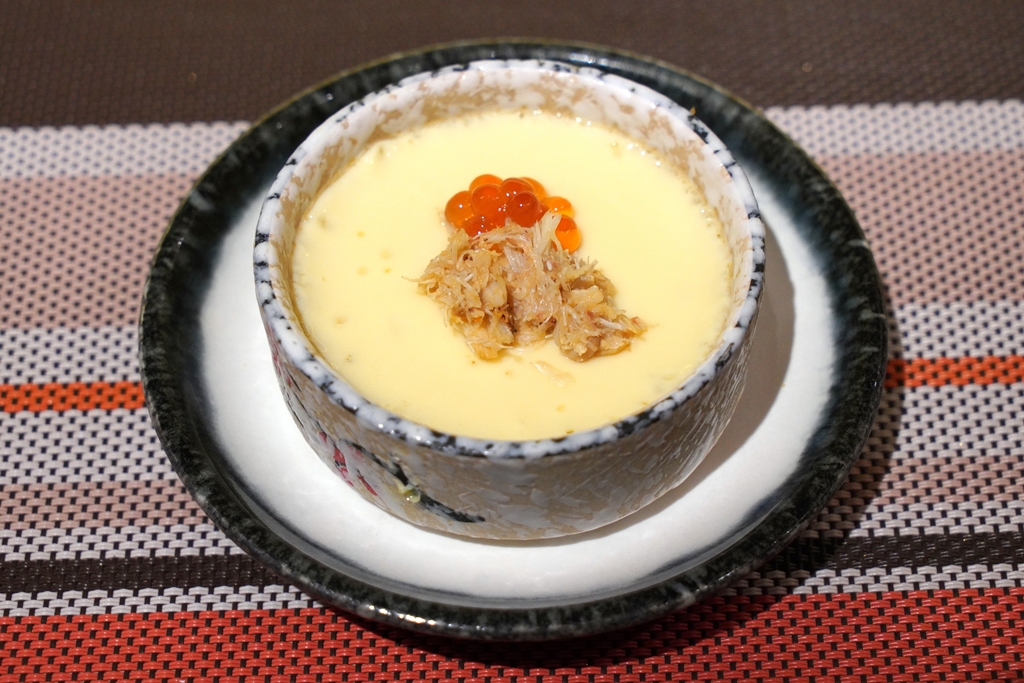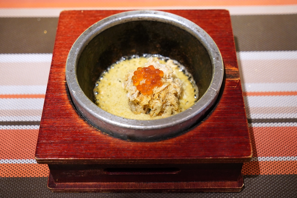 1st course : Chawanmushi [13/20] – ไข่ตุ๋นเสิร์ฟแบบอุ่นๆหน้าเนื้อปูหิมะและไข่ปลาแซลม่อน