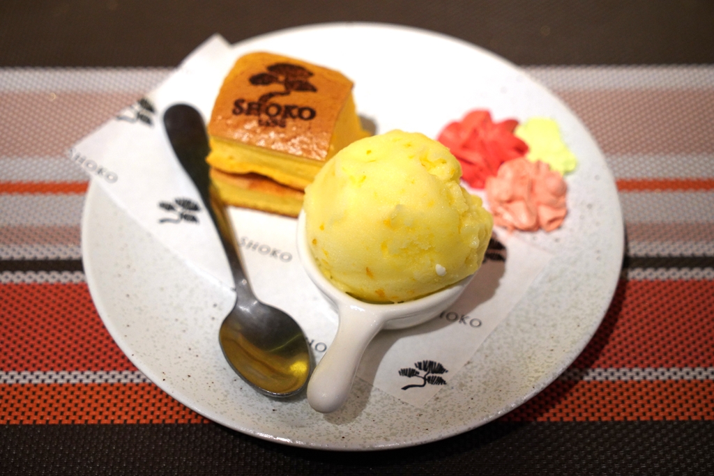 16th course : Dessert [13/20] – ไข่หวานเนื้อกุ้งกับครีมและไอศกรีมส้มยูสุ