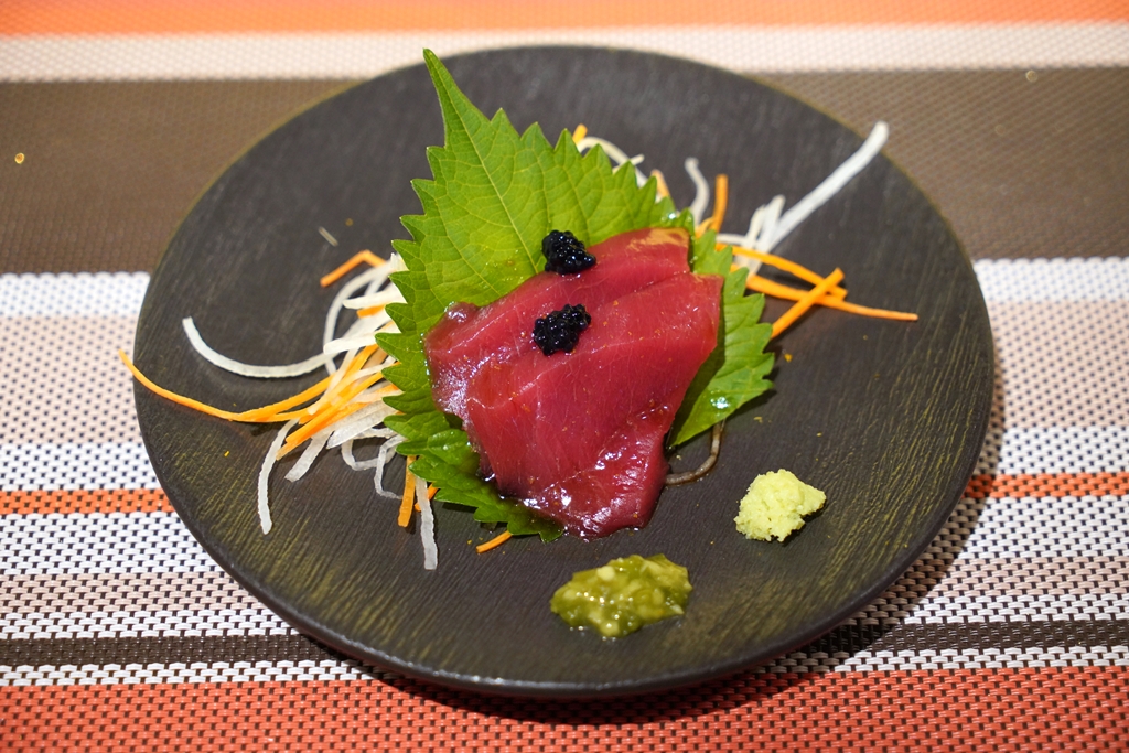2nd course : Akami Sashimi [14/20] – ซาชิมิทูน่าเนื้อแดงราดซอสโชยุเสิร์ฟคู่กับวาซาบิทั้งแบบสดและแบบดอง