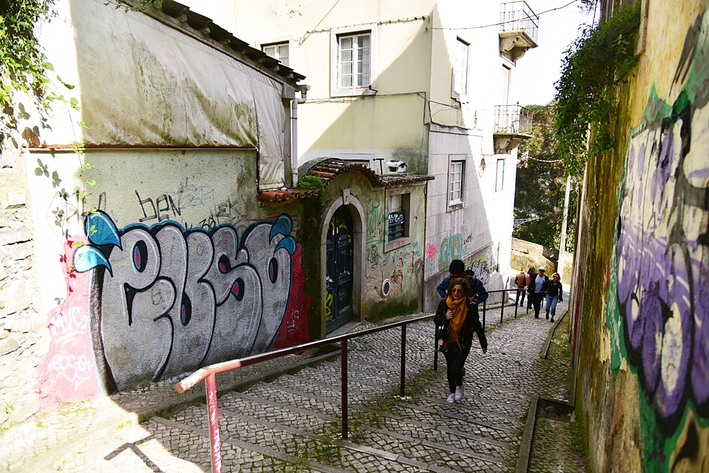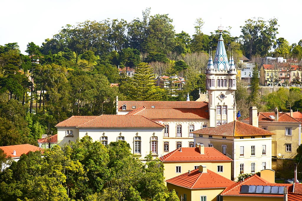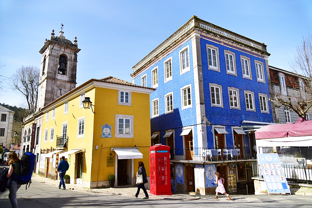 บรรยากาศภายในตัวเมือง Sintra ที่เต็มไปด้วยสิ่งปลูกสร้างสีสดและพื้นที่สูงต่ำตลอดทั้งเมือง