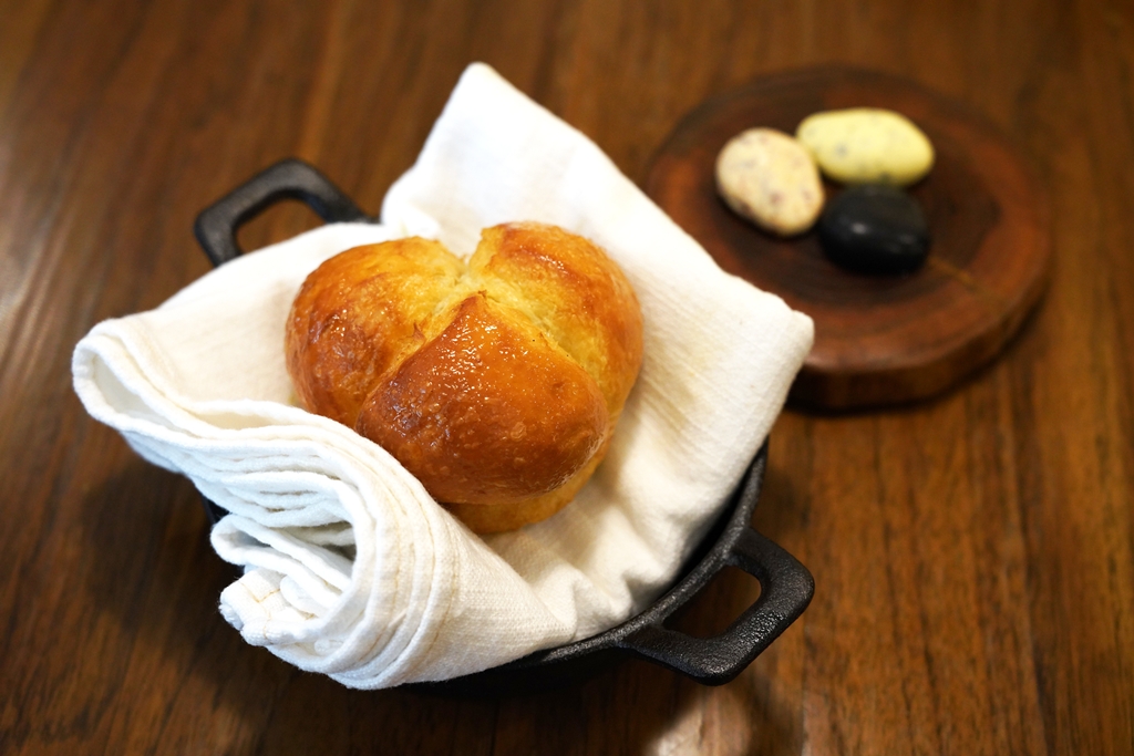 2. Sourdough Brioche & Three House-Fermented Koji Butters (180++ THB) [16/20] – ขนมปังบริออซซาวโดวจ์เสิร์ฟคู่กับเนยหมักโคจิ 3 รสชาติ