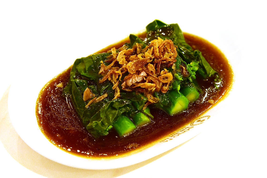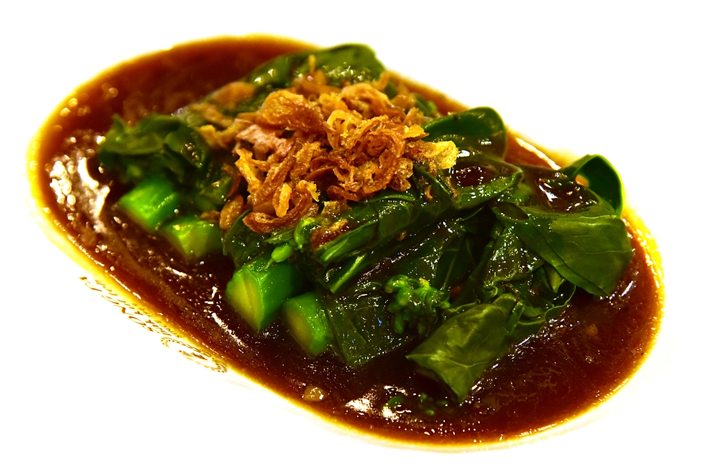 4. Kai Lan with Oyster Sauce (120 THB) – ผักคะน้าผัดน้ำมันหอยรสชาติกลมกล่อมโรยหน้าด้วยหอมทอด