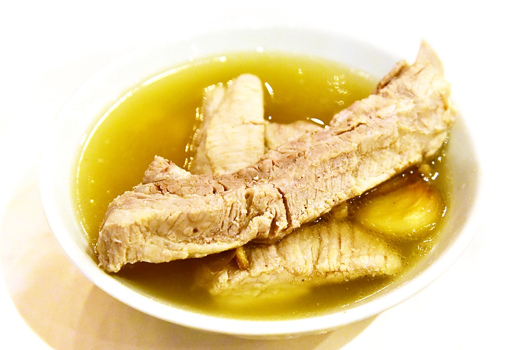 2. Pork Tenderloin Mee Sua Soup (200 THB) – หมี่ซั่วน้ำซุปพริกไทยขาวเสิร์ฟกับเนื้อหมูสันในนุ่มๆและกระเทียม ซุปจะเป็นซุปชนิดเดียวกันกับบักกุตเต๋ครับ รสชาติดีงาม ส่วนเส้นก็ดีแต่แอบสุกเกินไปนิดนึง