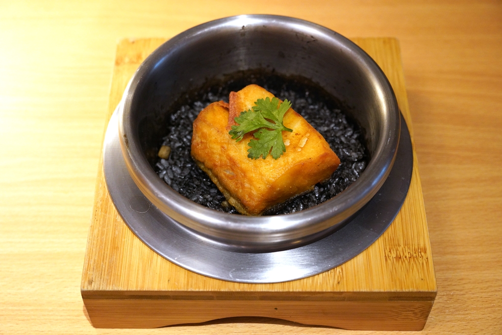 6. Pla-Hima Muekdum, Snowfish and Squid Ink (720++ THB) [16/20] ข้าวอบหม้อดินหมึกดำเสิร์ฟกับปลาหิมะทอดน้ำปลาเสิร์ฟคู่กับซอสน้ำปลา น้ำจิ้มซีฟู้ด ยำมะม่วงและซุปไก่