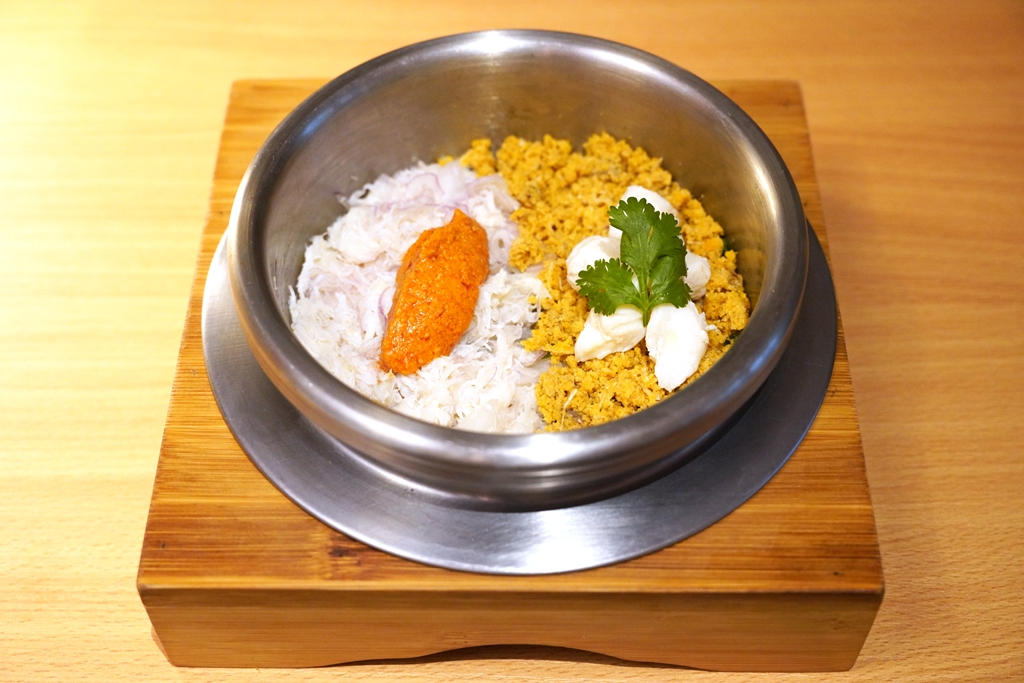 7. Pu, Jumbo Crab Lump and Roe (750++ THB) [15/20] ข้าวอบหม้อดินรสชาติแบบข้าวยำปูที่ท็อปด้วยเนื้อปูก้อน ปูฉีก ไข่ปูและมันปู เสิร์ฟกับน้ำจิ้มซีฟู้ด เครื่องยำและซุปไก่