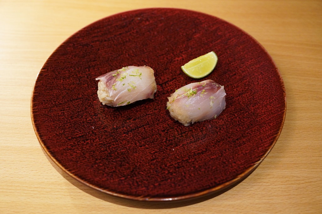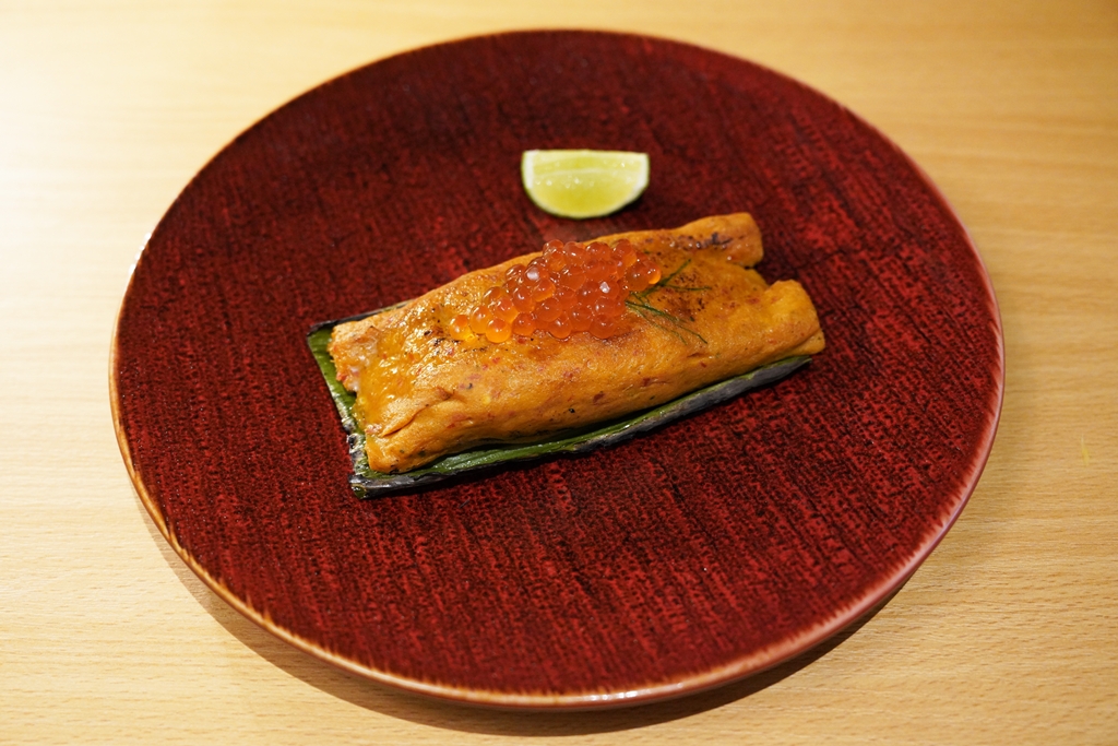 1. Smoked Black Salmon, Fermented Fish Nigiri (150++ THB) [14/20] ปลาช่อนทะเลรมควันเสิร์ฟบนข้าวยำคลุกน้ำปลาร้าปรุงสุก
