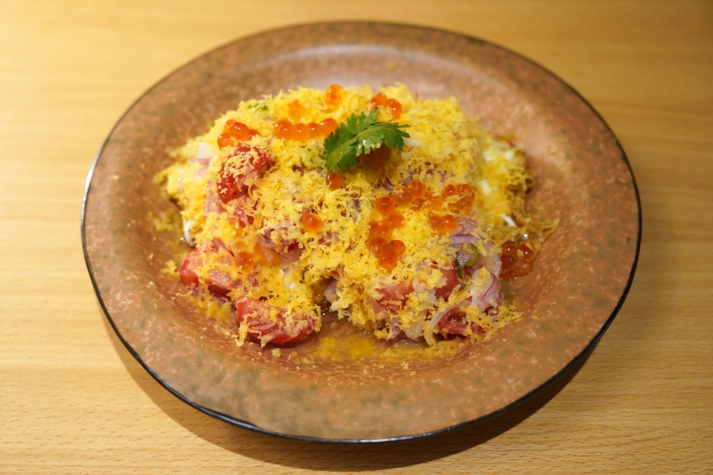 3. Yum 3-Kai, Fried Egg and Roe Spicy Salad (200++ THB) [14/20] ยำ 3 ไข่ ได้แก่ ไข่ดาว ไข่แดงเค็มขูดฝอยและไข่แซลมอนปรุงรสยำแบบเปรี้ยวหวาน
