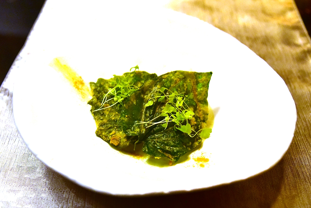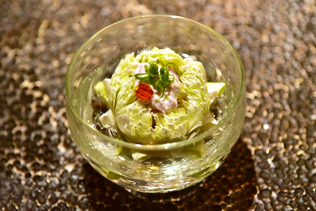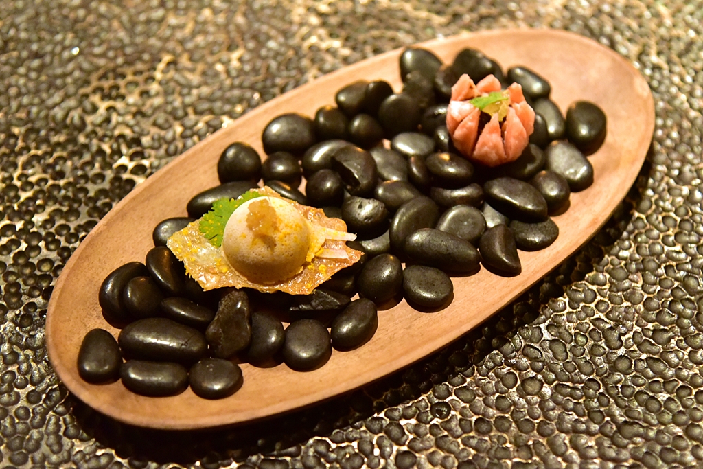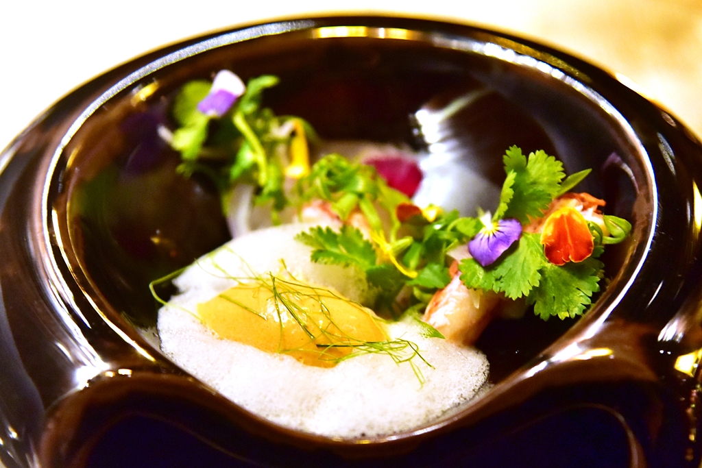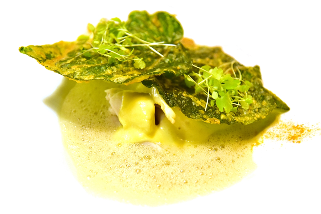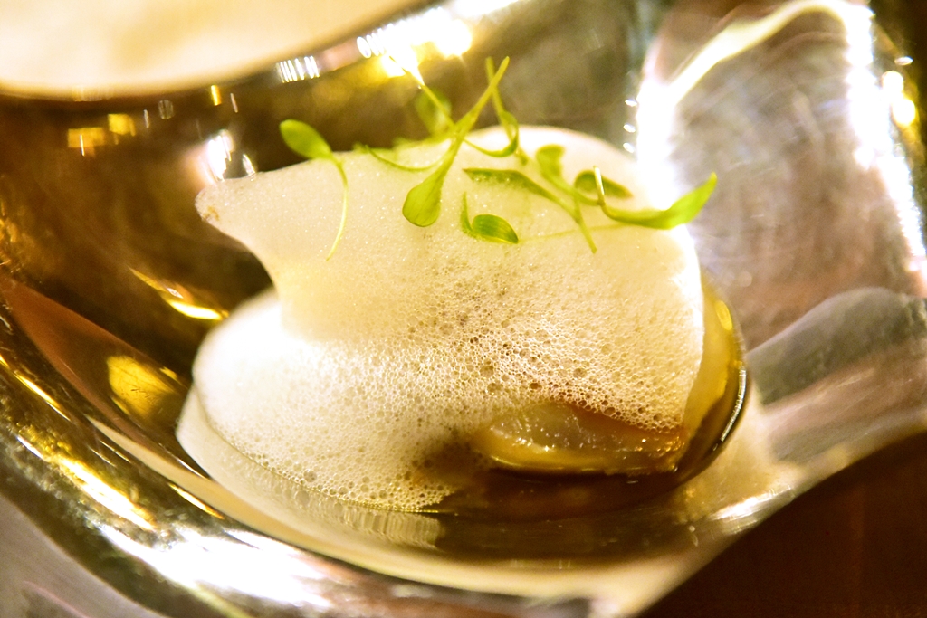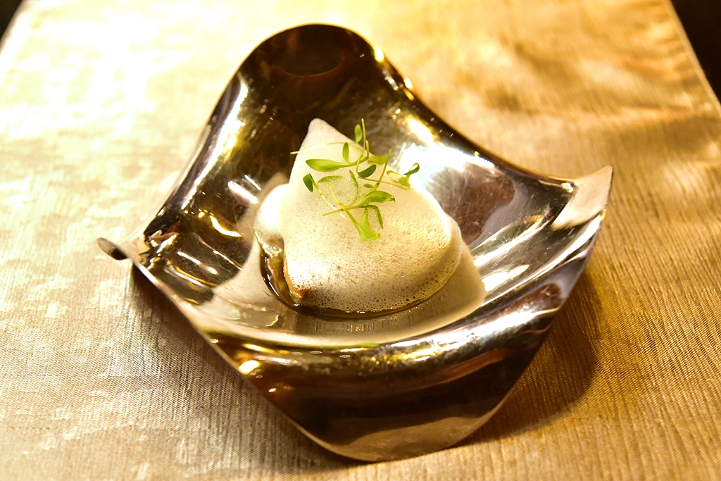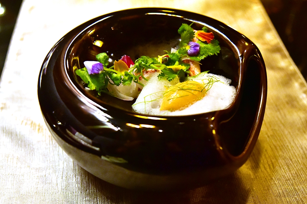 3rd course: Yellow Curry Crab Meat with Corn [17/20] – แกงเหลืองเนื้อปูก้อนที่เสิร์ฟตัวแกงมาในรูปของโฟมรสชาติจัดจ้านคู่กับเนื้อกรรเชียงปูชิ้นโตหวานสดและครีมข้าวโพดรสหวานกลมกล่อม ทุกอย่างเข้ากันได้อย่างดีเยี่ยม
