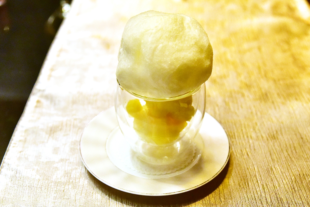 7th course: Mango with Sticky Rice [13/20] – ข้าวเหนียวมะม่วงและไอศกรีมมะม่วงเสิร์ฟคู่กับกะทิและสายไหม