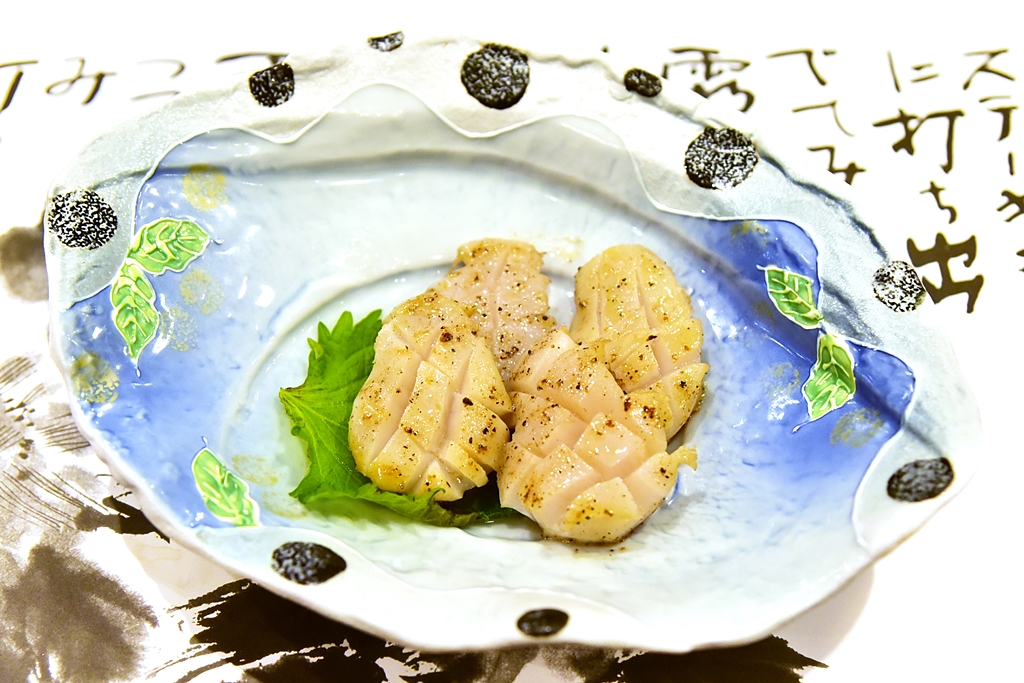 3. Scallops (2,000+ Yen) – หอยเชลล์ฮอกไกโดตัวใหญ่ยักษ์ย่างกระทะร้อนแบบสุกกำลังดี
